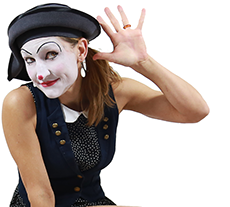 The quintessence of my Performances are the aspects of pantomime and the spontaneous interactivity between performance and the public. I favour silence to enter into the field of communication and to end up and enter the door of body language and expression.