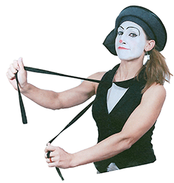 Maßgeblich für meine Performing Acts sind die pantomimischen Aspekte meiner Darstellung und der interaktive Teil mit dem (spontan entstehenden) Publikum.